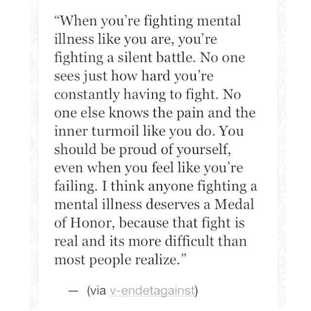 Leve med psykiske lidelser er et vanskelig liv, verden har et syn på oss og veldig mange har meninger om hva som vil “hjelpe” oss. Men lite av de forslagene hjelper, det som hjelper oss er at dere er her for oss, sitte sammen med oss, handle for oss, lage mat til oss, hjelpe til med husarbeid og alt av daglige oppgaver som dere vil se på som trivielle ting. Mens for oss er det så vanskelig fra tid til annen at vi kan bruke et par timer på å planlegge å hente posten. Daglige rutiner er viktig for oss, men så vanskelig fordi når vi våkner har vi ikke anelse om hvordan dagen blir. Ensomheten kan bli et stort hull, følelsen av at ingen forstår eller er her for oss. Dette livet er ikke noe vi velger eller styrer, det styrer oss og kan ta over alt vi før hadde “kontroll” over.